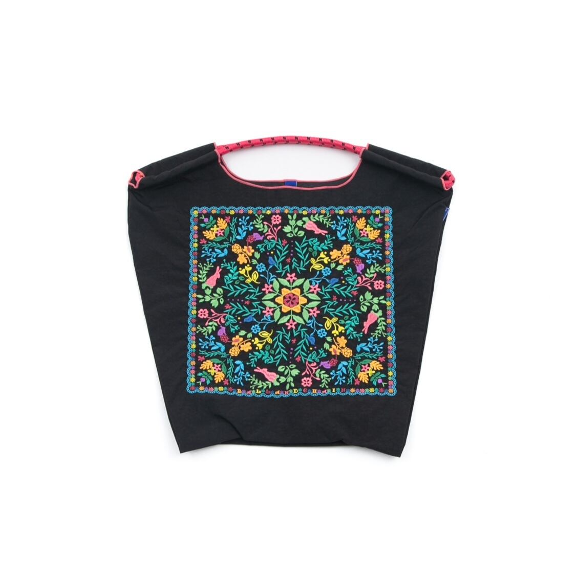 耐久性、撥水性に優れた厚手のポリエステル素材に、 グラフィックデザインをそのまま「刺繍」で施すことで、 高級感がありデザイン性の高いバッグとなっています。