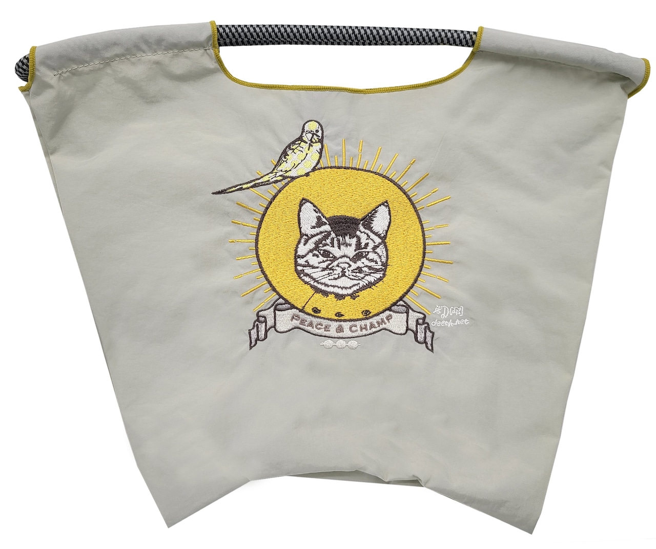耐久性、撥水性に優れた厚手のポリエステル素材に、 グラフィックデザインをそのまま「刺繍」で施すことで、 高級感がありデザイン性の高いバッグとなっています。